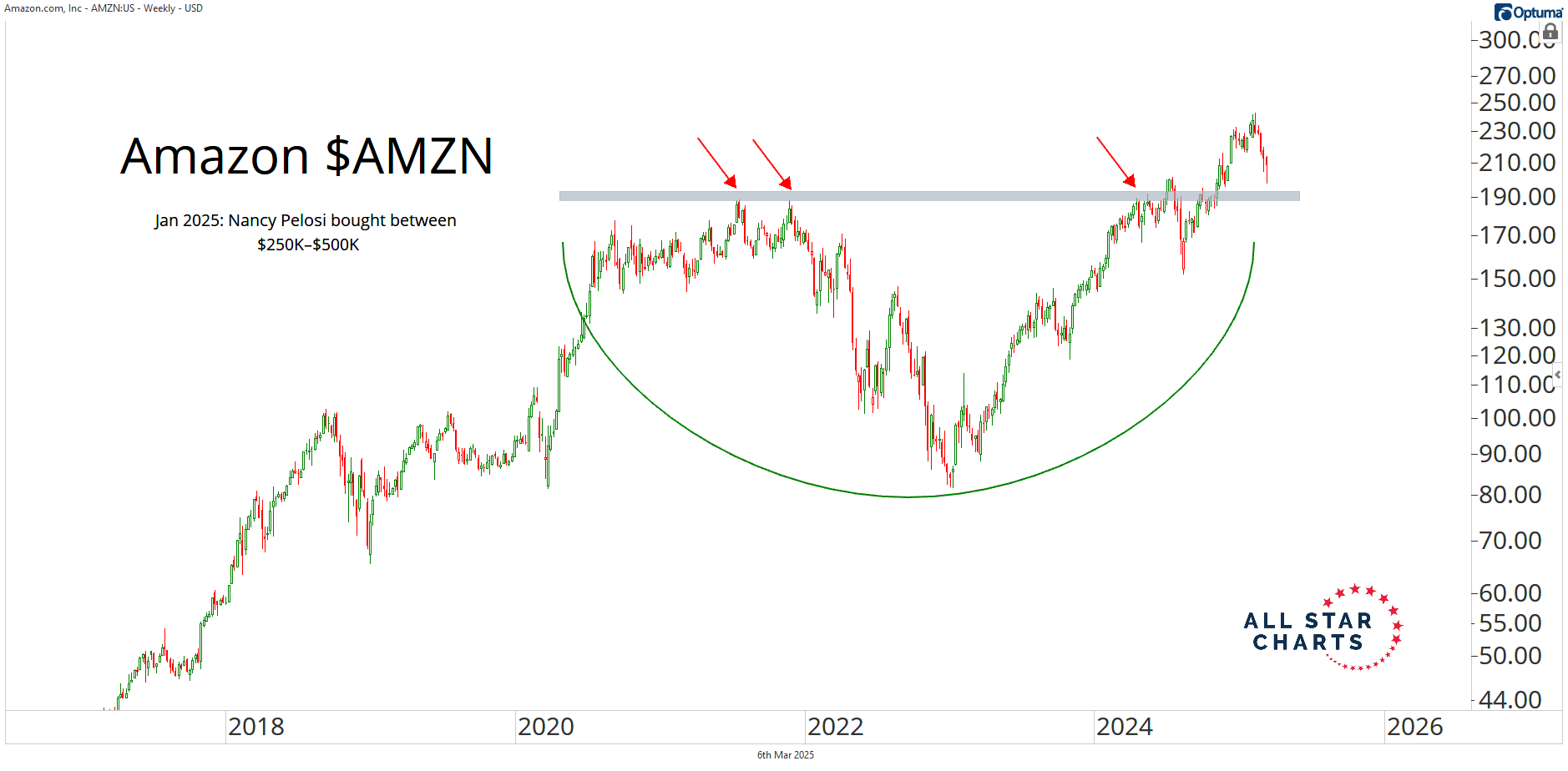 Amazon broke out of a multi-year base in October and has been pulling back to its breakout level since February.