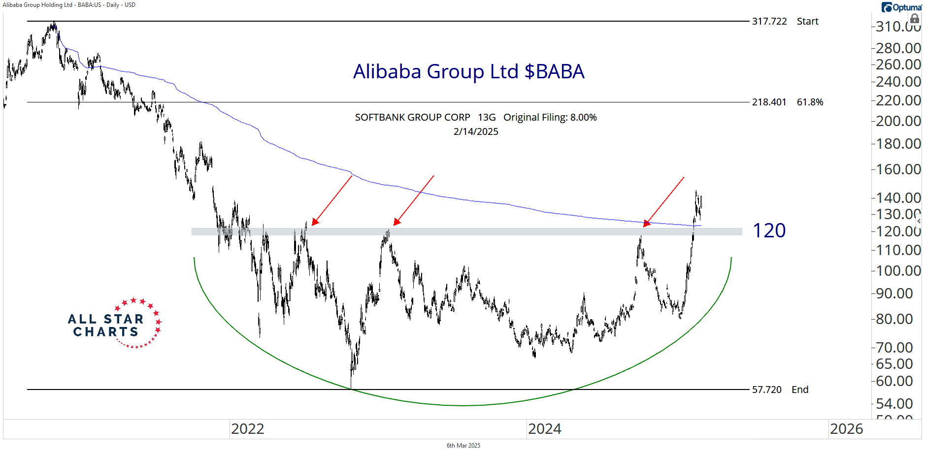 As long as we’re above 120, this is a fresh uptrend for BABA.