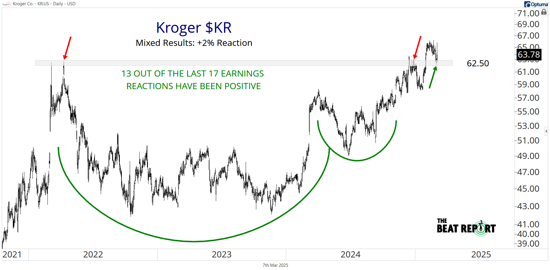Kroger $KR is one of the largest grocery store chains in the United States, and they've been rewarded for 13 out of its last 17 earnings reports.