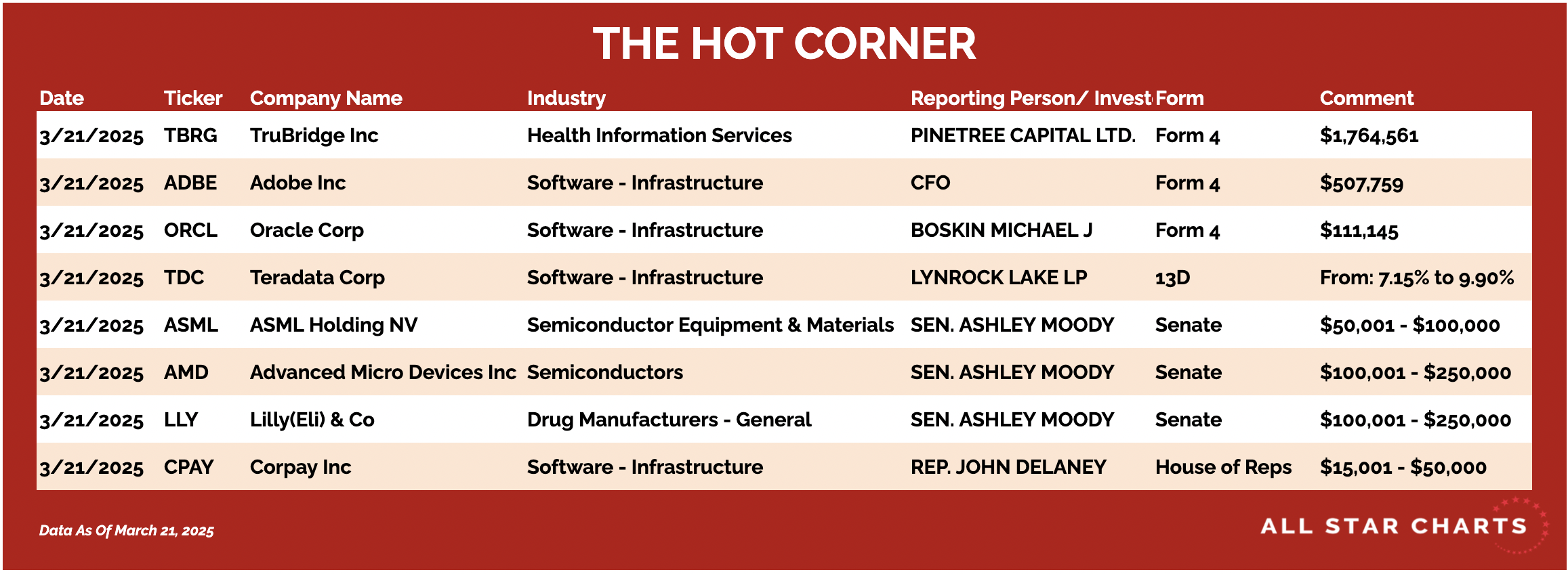 Here’s The Hot Corner, with data from March 21, 2025: