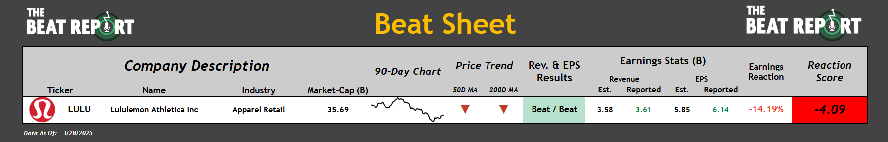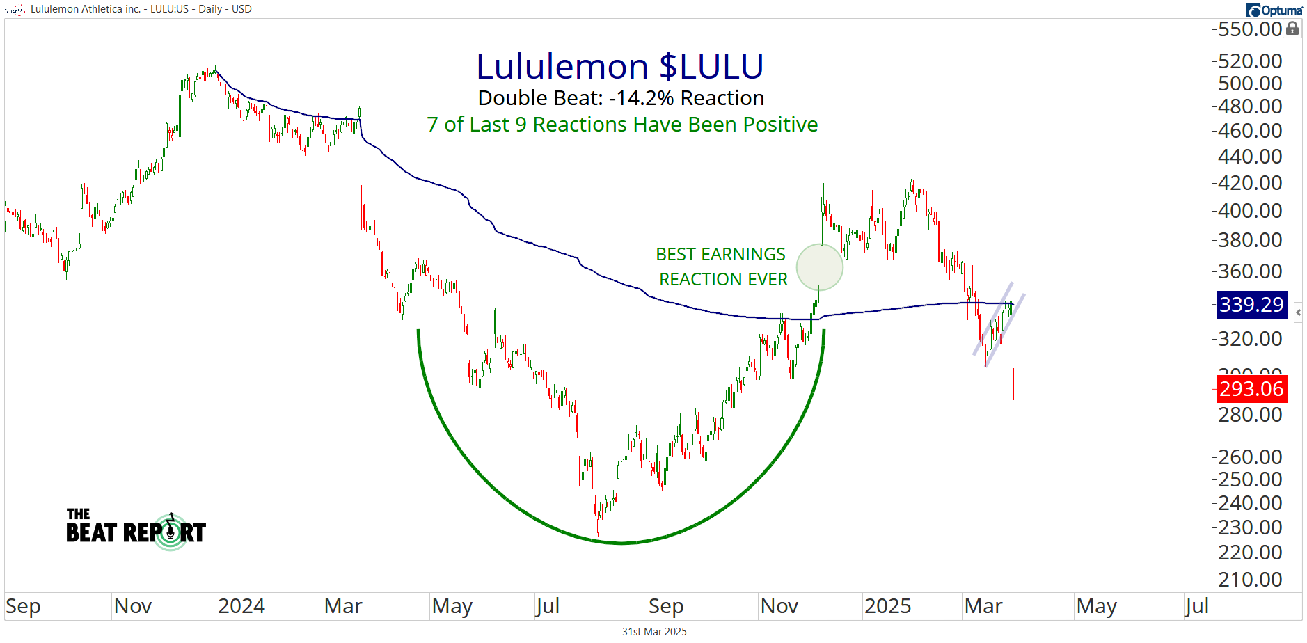 Last week, we told you that we were looking forward to the Lululemon $LULU earnings report. This is because the stock had one of its best earnings reactions ever in Q4 2024. We expected to see follow-through on the upside this quarter.