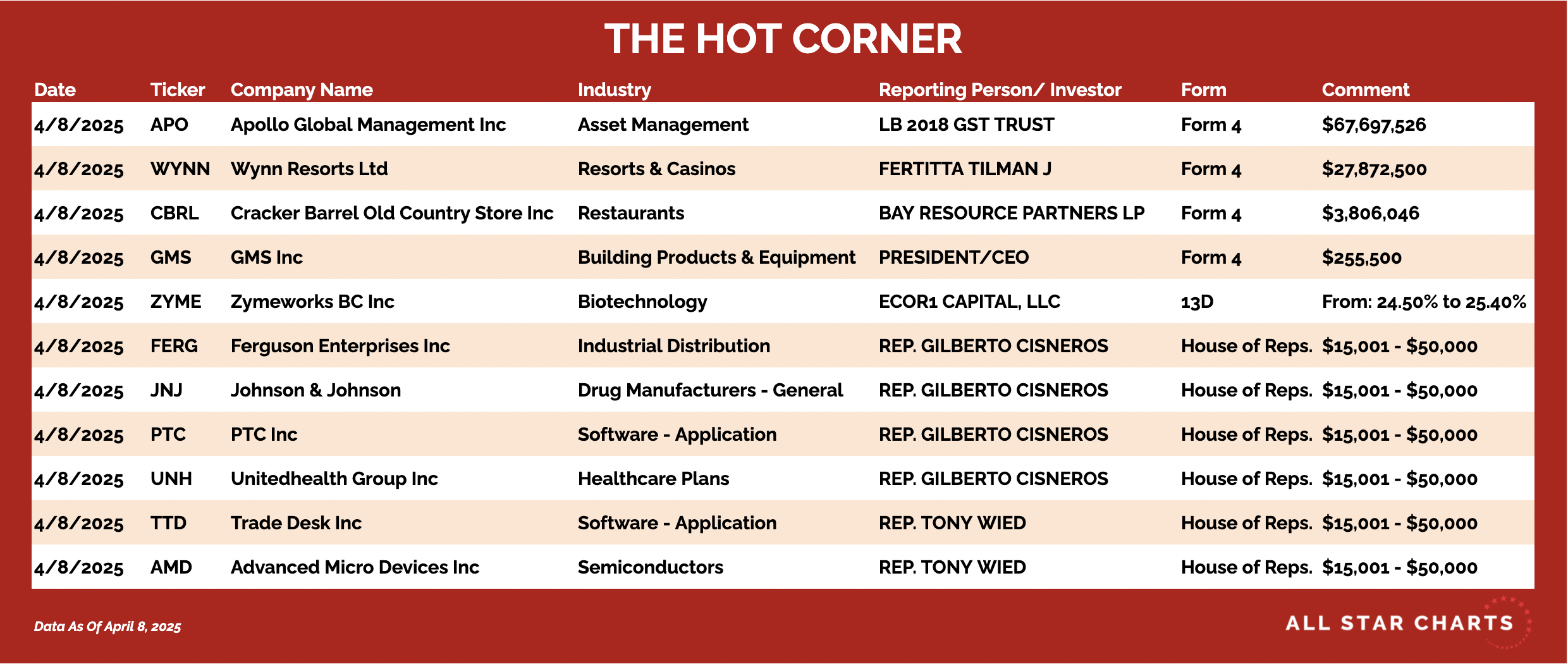 Hereโ€™s The Hot Corner, with data from April 8, 2025: