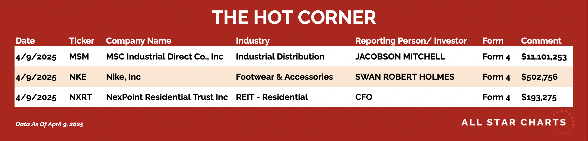 📌 The most notable insider activity from yesterday’s filings came from the boardroom of Nike $NKE, where Director Bob Swan disclosed a $502,756 purchase.