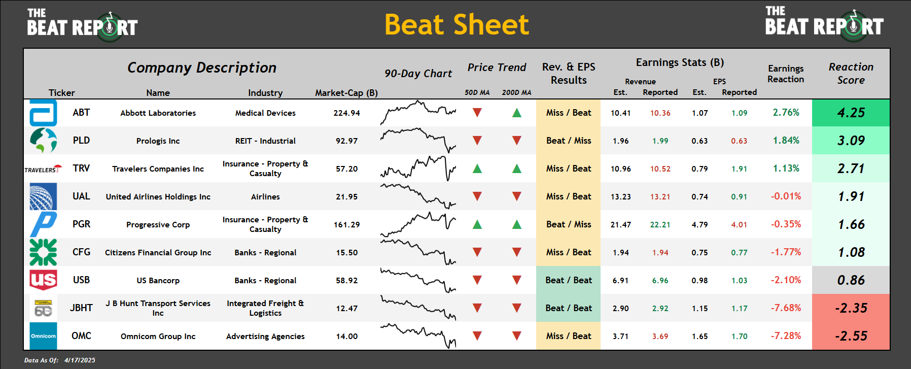 Abbott Laboratories $ABT had the best reaction score and reported mixed results.