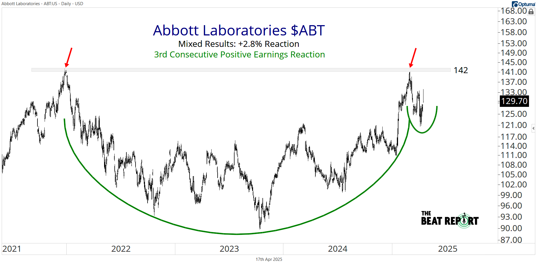 ABT had its 3rd consecutive positive earnings reaction:
