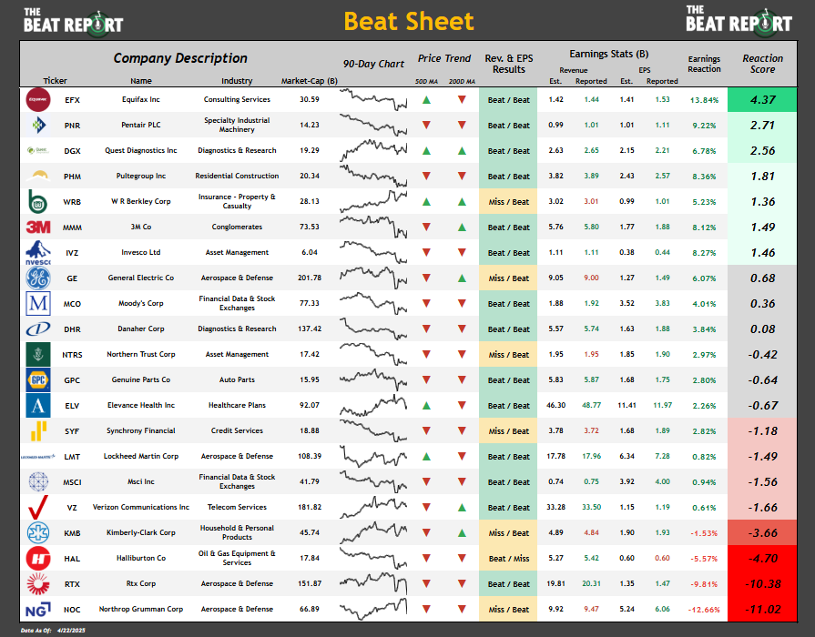 Northrop Grumman $NOC had the worst reaction score and reported mixed results.