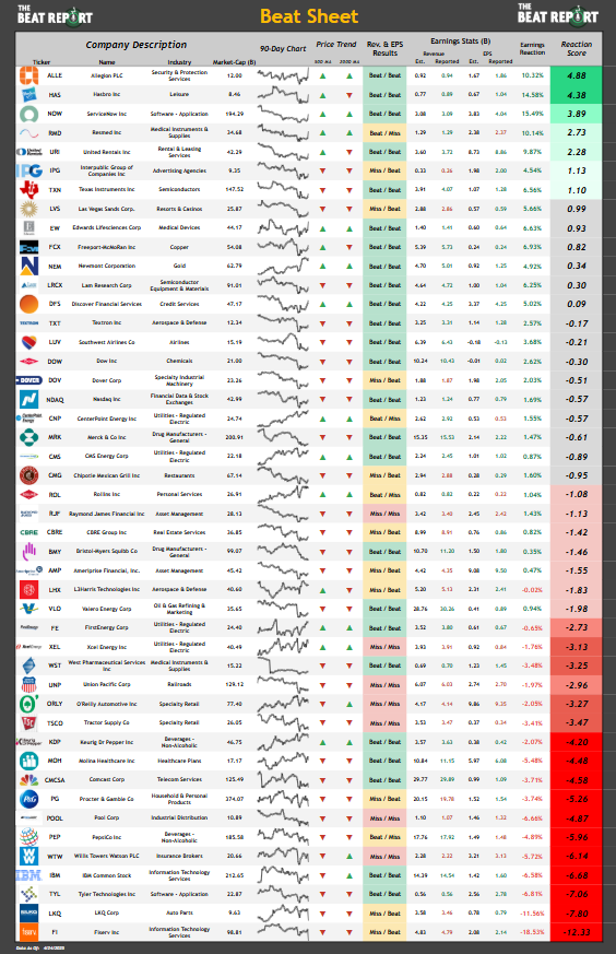Allegion $ALLE had the best reaction score after reporting a double beat.