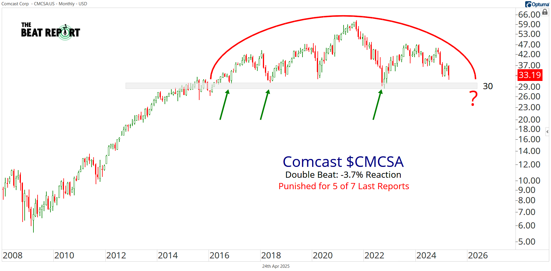 CMCSA has been punished for 5 of its last 7 earnings reports: