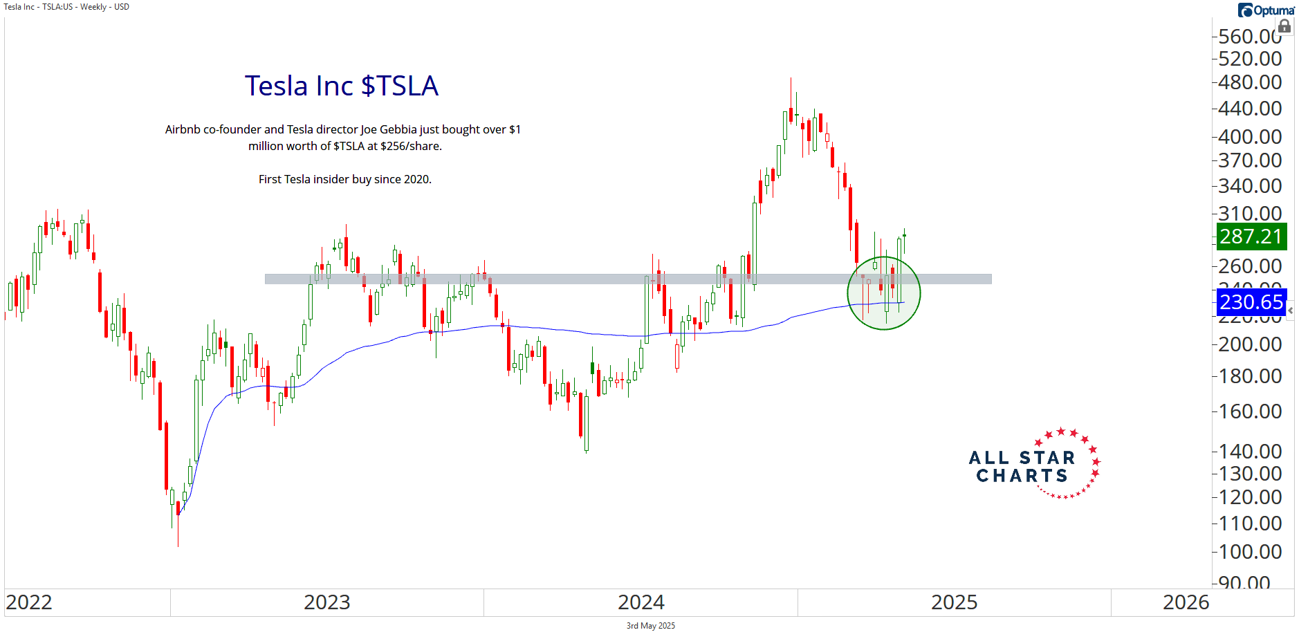 Airbnb co-founder and Tesla board member Joe Gebbia bought 4,000 shares on April 28 at around $256 per share — dropping over $1 million into the stock.