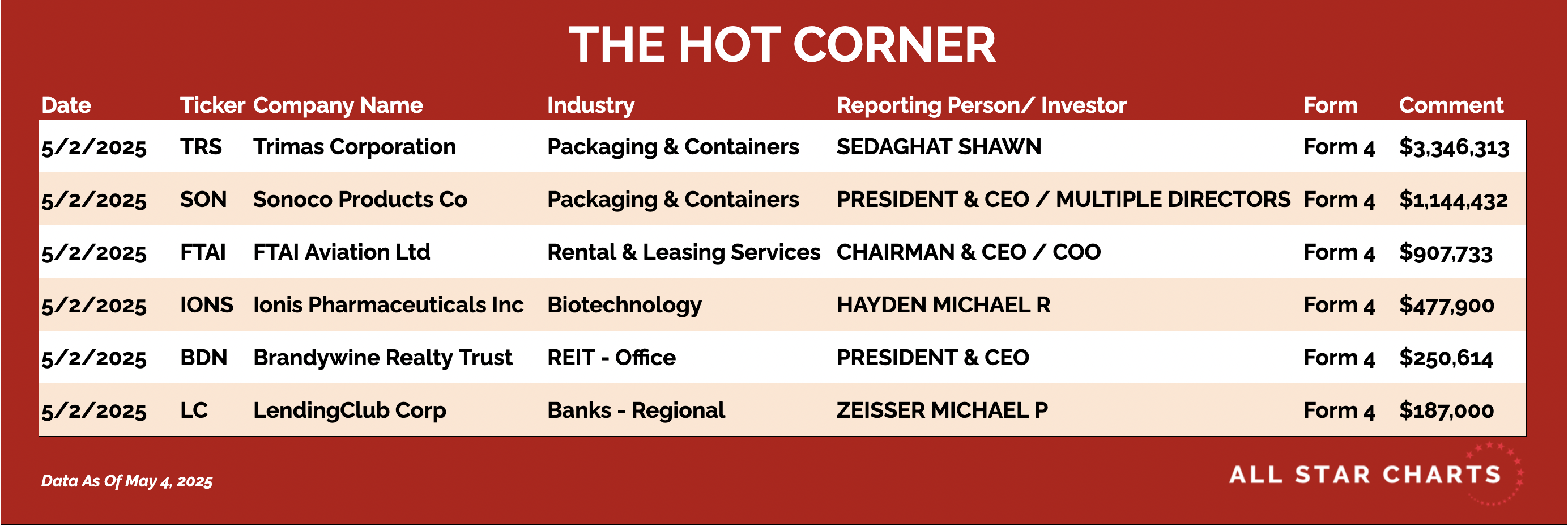 Here’s The Hot Corner, with data from May 2, 2025: