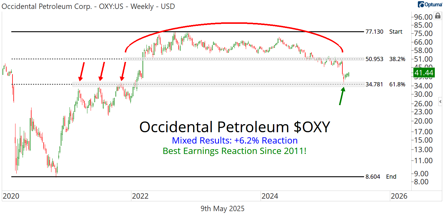 Despite lower Crude Oil prices and a broadly weak Energy sector, Occidental Petroleum is bucking the trend and is being rewarded for its earnings reports.