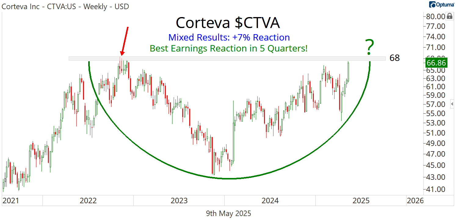 Corteva $CTVA had the best reaction score after reporting mixed results.