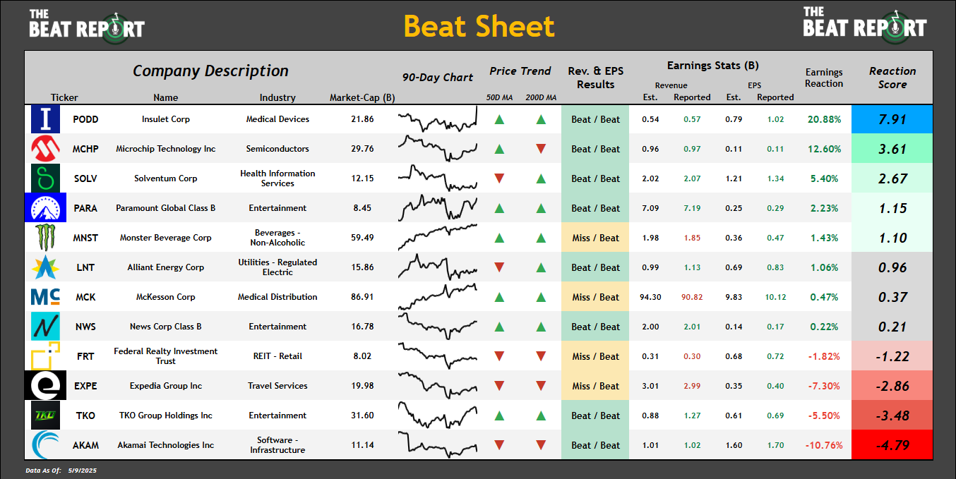 Insulet $PODD had the best reaction score after reporting a double beat.