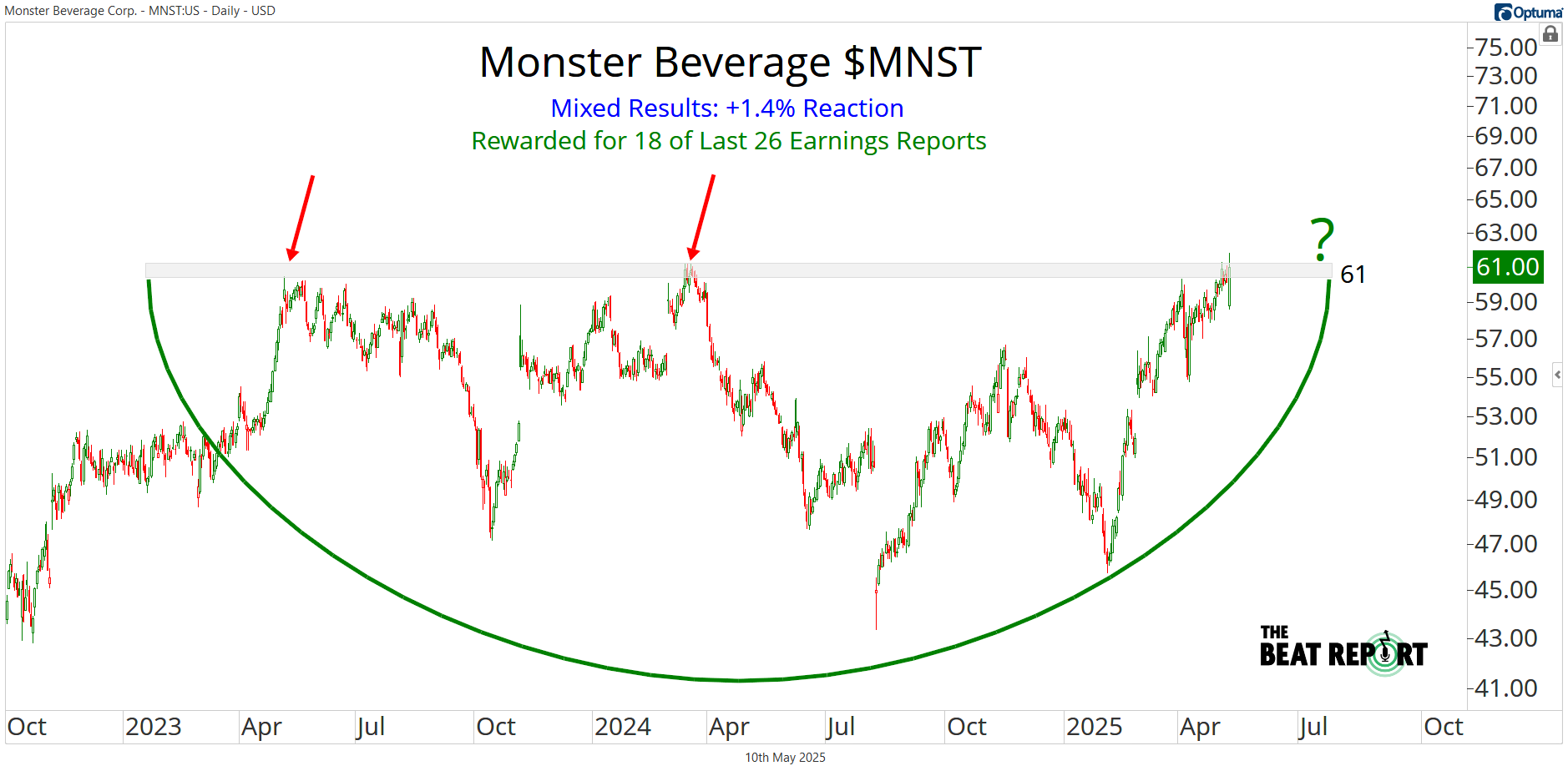 If MNST is above 61, the path of least resistance will shift from sideways to higher for the foreseeable future.