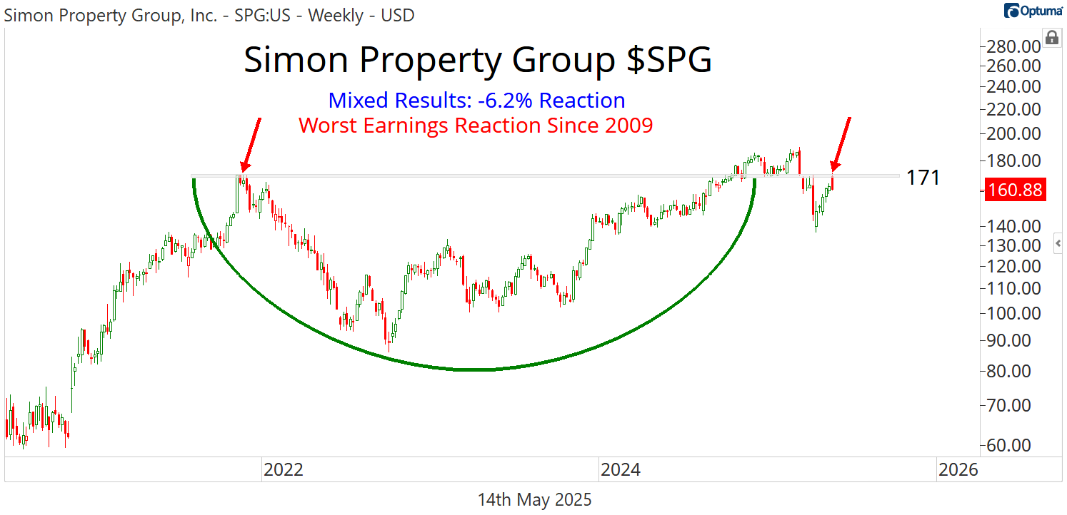 Simon Property Group $SPG just turned in mixed results, and the market wasn’t having it.