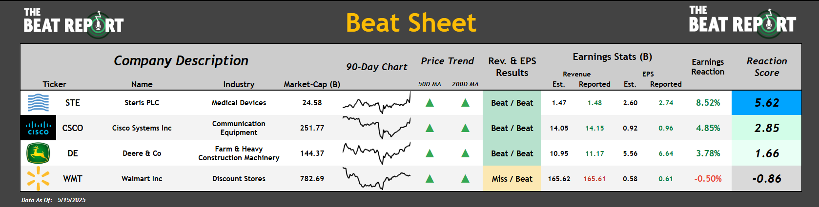 Steris $STE had the best reaction score after reporting a double beat.
