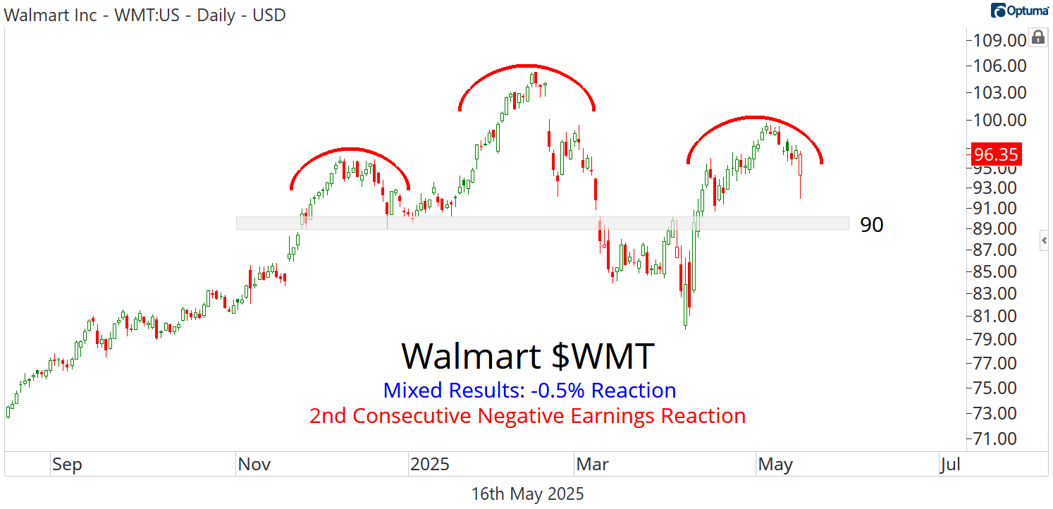 Shares slipped -0.5% on the day, marking the second consecutive negative earnings reaction for the world’s largest retailer.