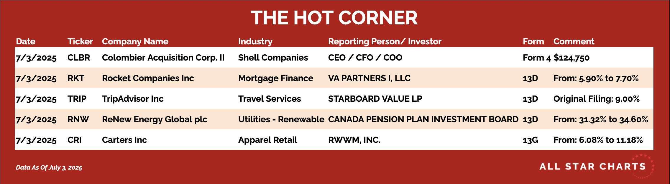 Here’s The Hot Corner, with data from July 3, 2025: