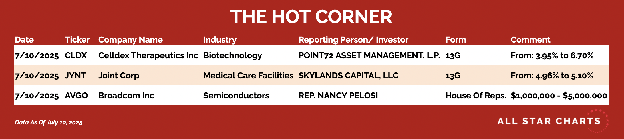📌 Celldex Therapeutics $CLDX – Point72 Asset Management bumped its 13G stake from 3.95% to 6.70%.