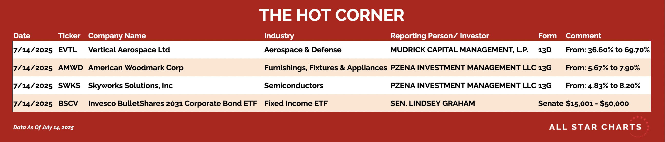 Here’s The Hot Corner, with data from July 14, 2025:
