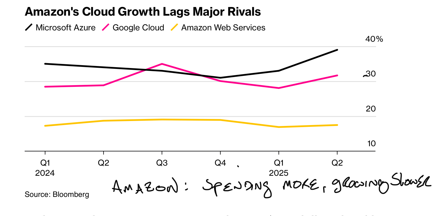 In the context of this time, when Microsoft and others are seen as ripping share away from AWS and just reported huge growth, Amazon's famous long-term view of investing for "the future" rather than next quarter Jassey's navel-gazing approach hit the wrong note with analysts.