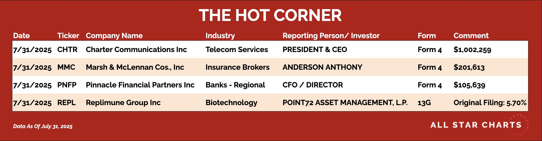 Here’s The Hot Corner, with data from July 30, 2025: