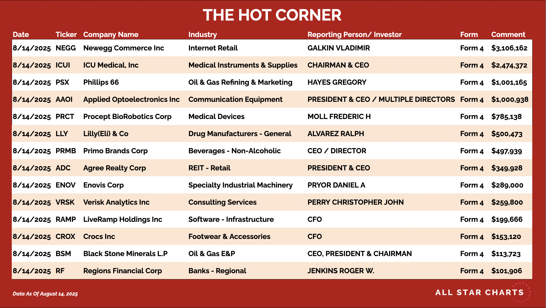 Have a great weekend. We'll be back Monday with more insider activity.