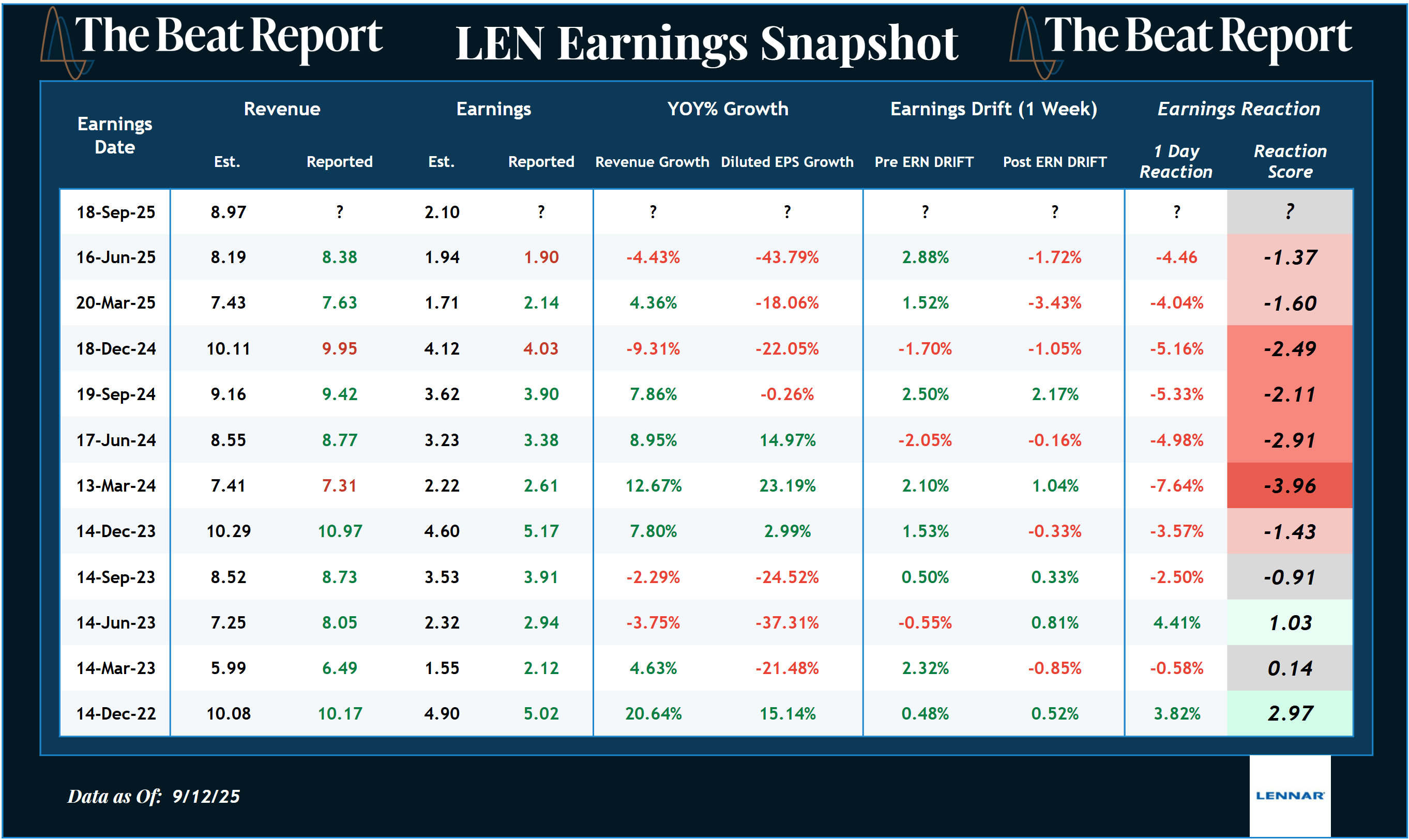 Over the past three years, Lennar has been at the top of the leaderboard for worst post-earnings mover. The market has slammed the stock after eight consecutive earnings reports.