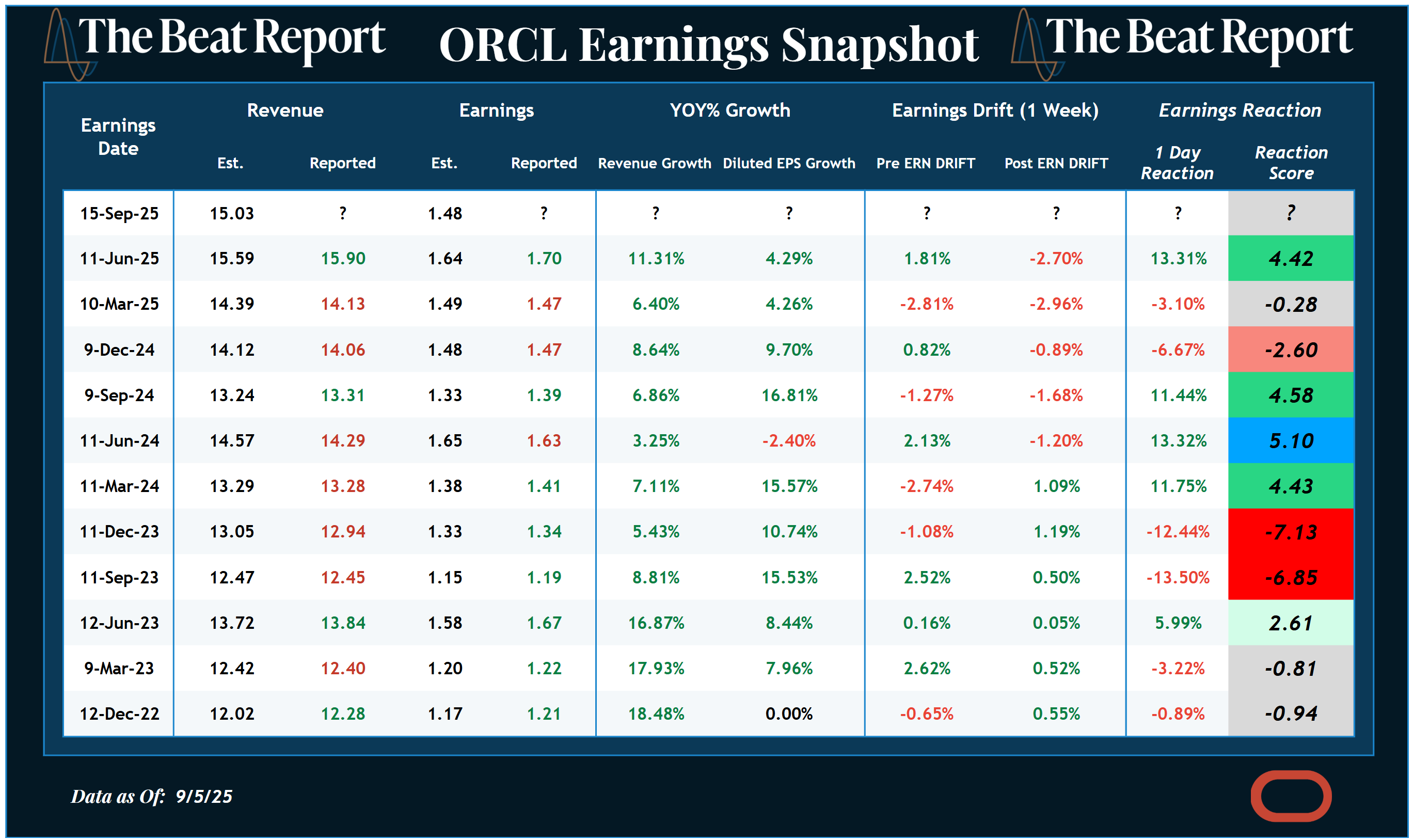 Here are the past 3 years of earnings results & reactions for ORCL π