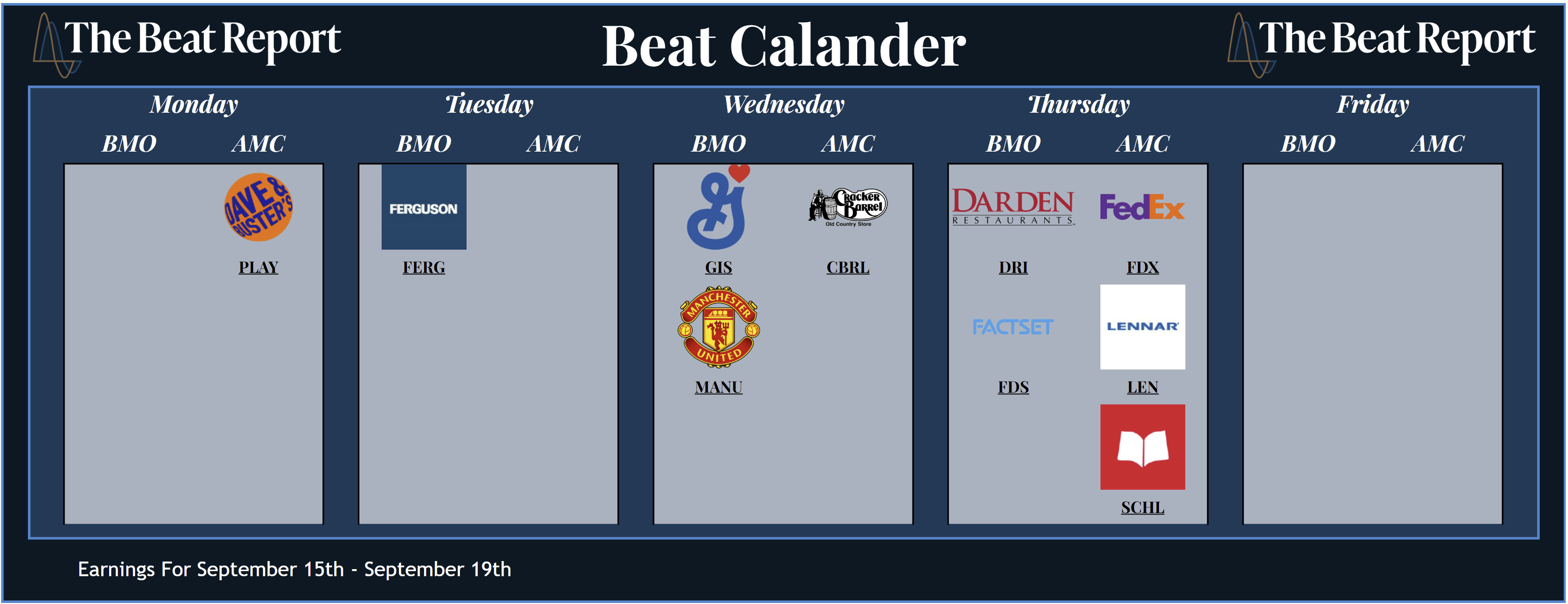 It'll be one of the slowest weeks of the year in terms of new earnings reactions, but as you can see, there will be plenty to cover in The Daily Beat.