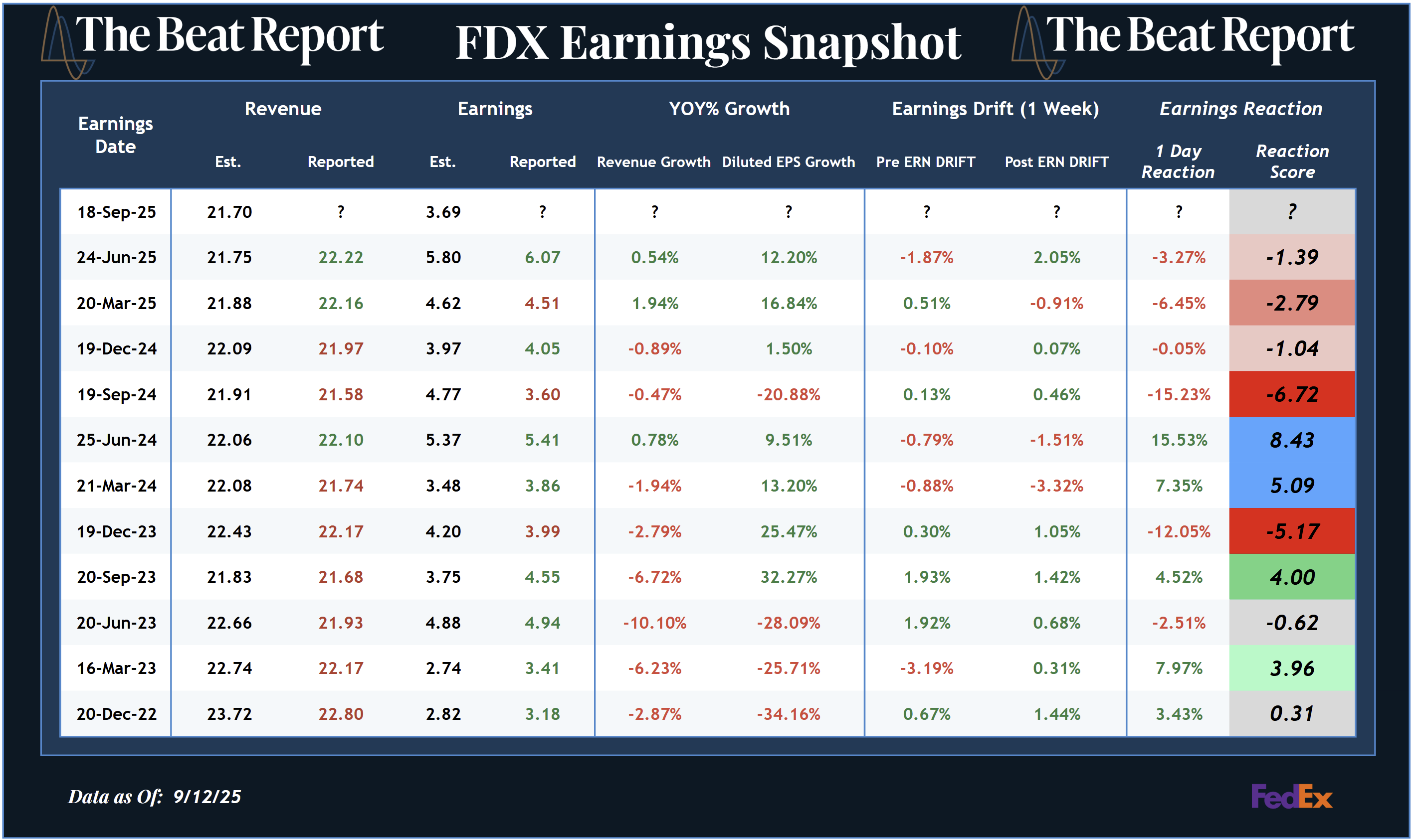 Here are the past 3 years of earnings results & reactions for FDX 👇
