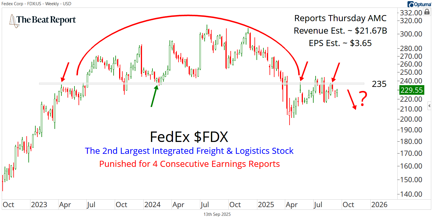 Next week, we'll be focusing on the second-largest integrated freight and logistics company, FedEx $FDX. It's a bellwether for transportation stocks, which have sat on the sidelines for this entire bull market.