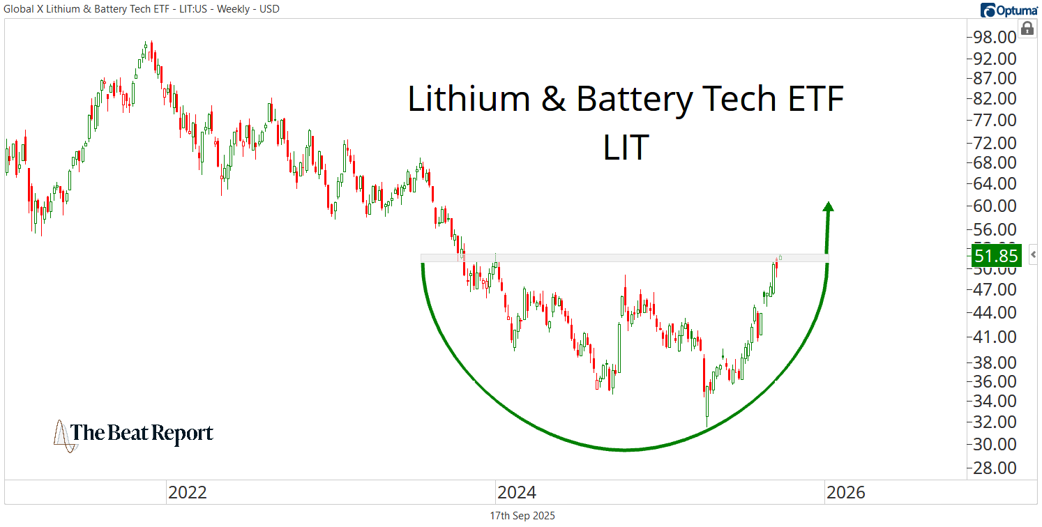 The Lithium & Battery Tech ETF is on the cusp of resolving a massive bearish-to-bullish reversal pattern. A breakout from here would mark the beginning of a brand-new bull market in this space - one that could last for years.
