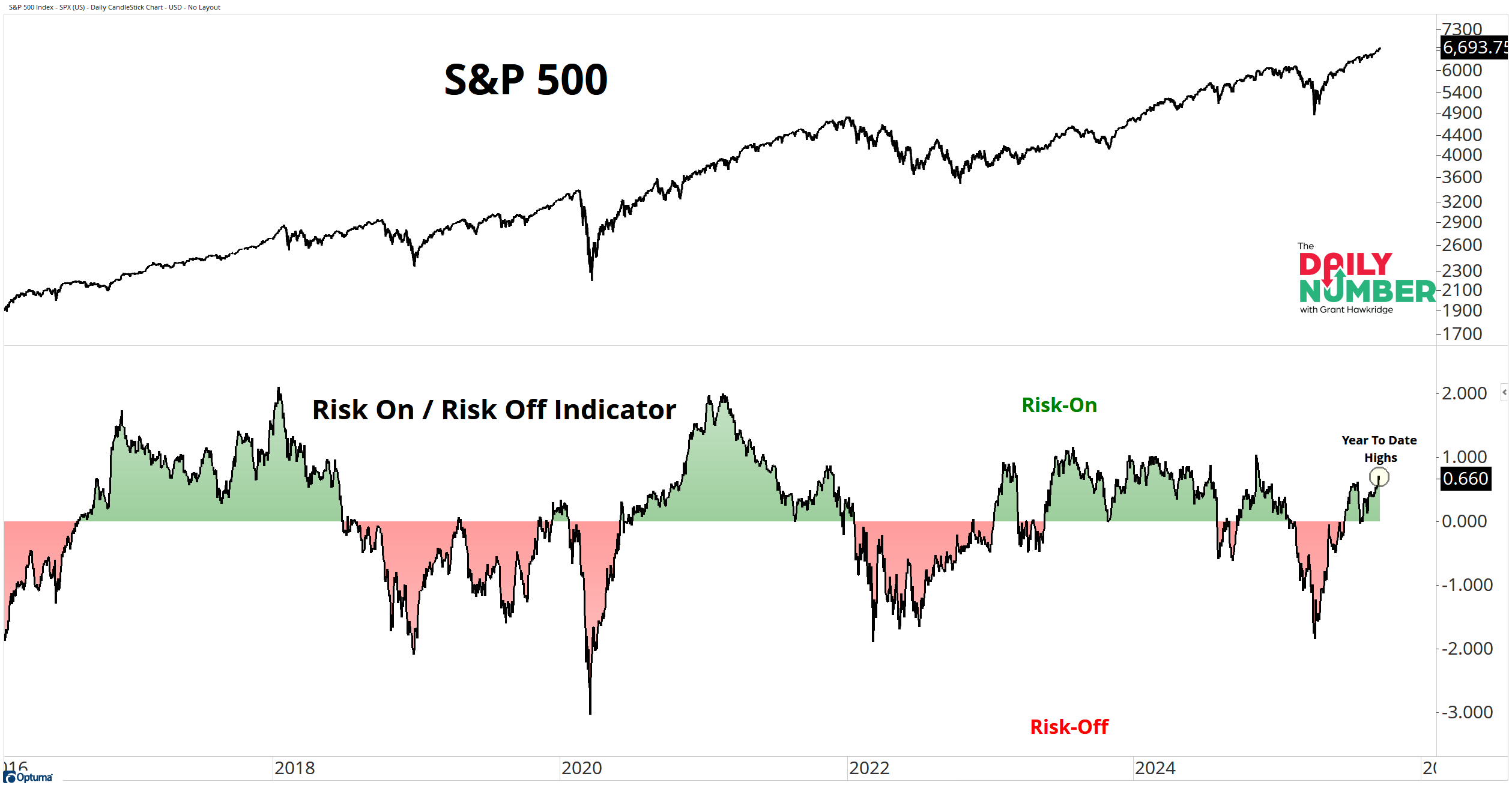 That’s the latest reading of our Risk-On/Risk-Off Indicator, its highest level so far this year and the strongest since November 2024.