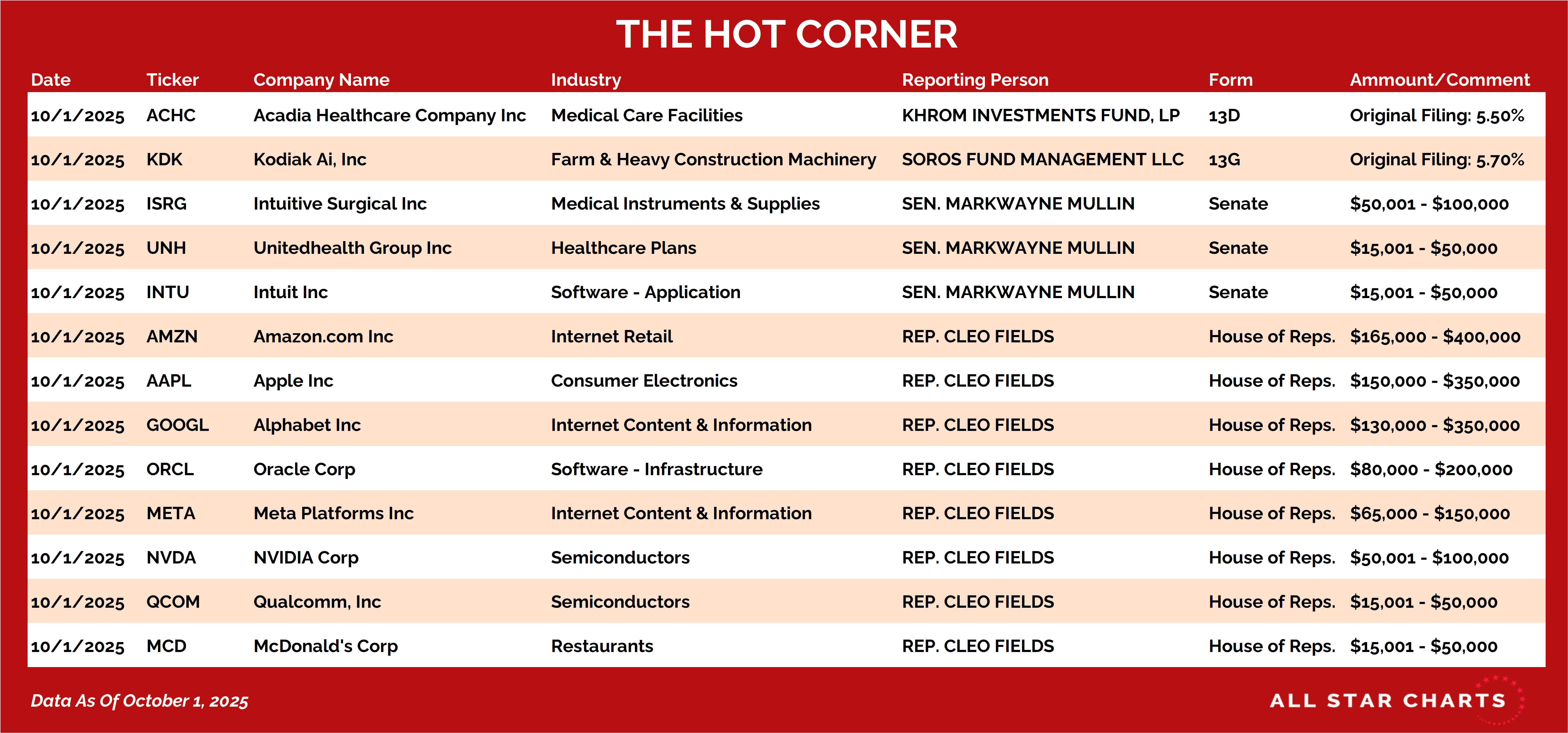 The video and the chartbook from the September 26 Hot Corner Insider Weekly Strategy Session are now available for Hot Corner Insider subscribers.