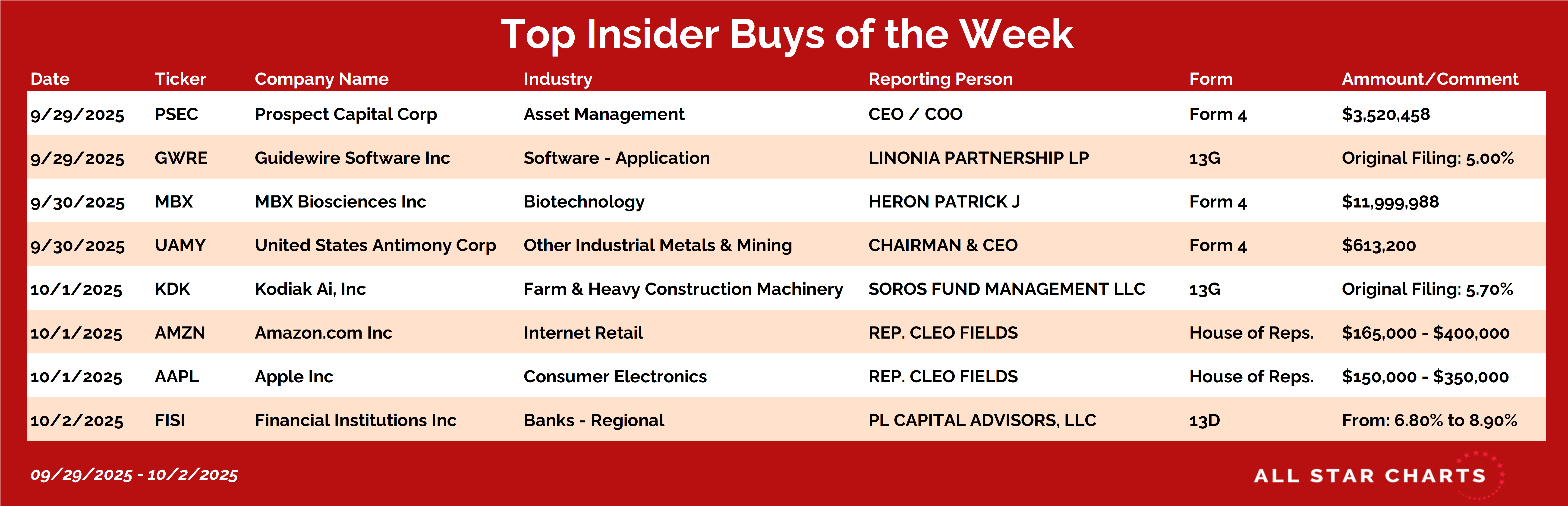 Every weekend, I dig into our insider activity tracker looking for the biggest conviction buys — and this week, there’s a mix of biotech, asset management, industrials, and political filings making headlines.