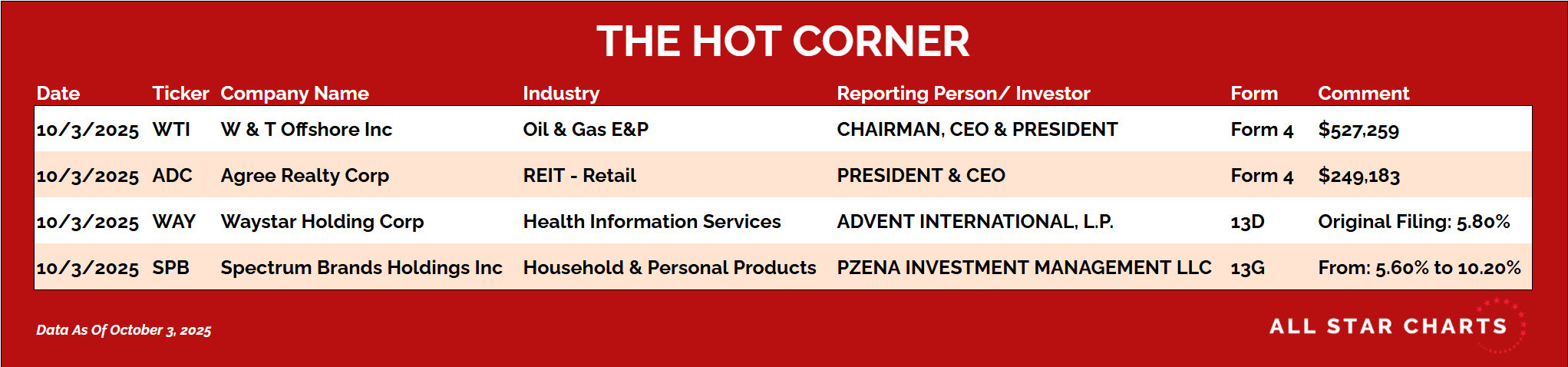 Hereβs The Hot Corner, with data from October 3, 2025: