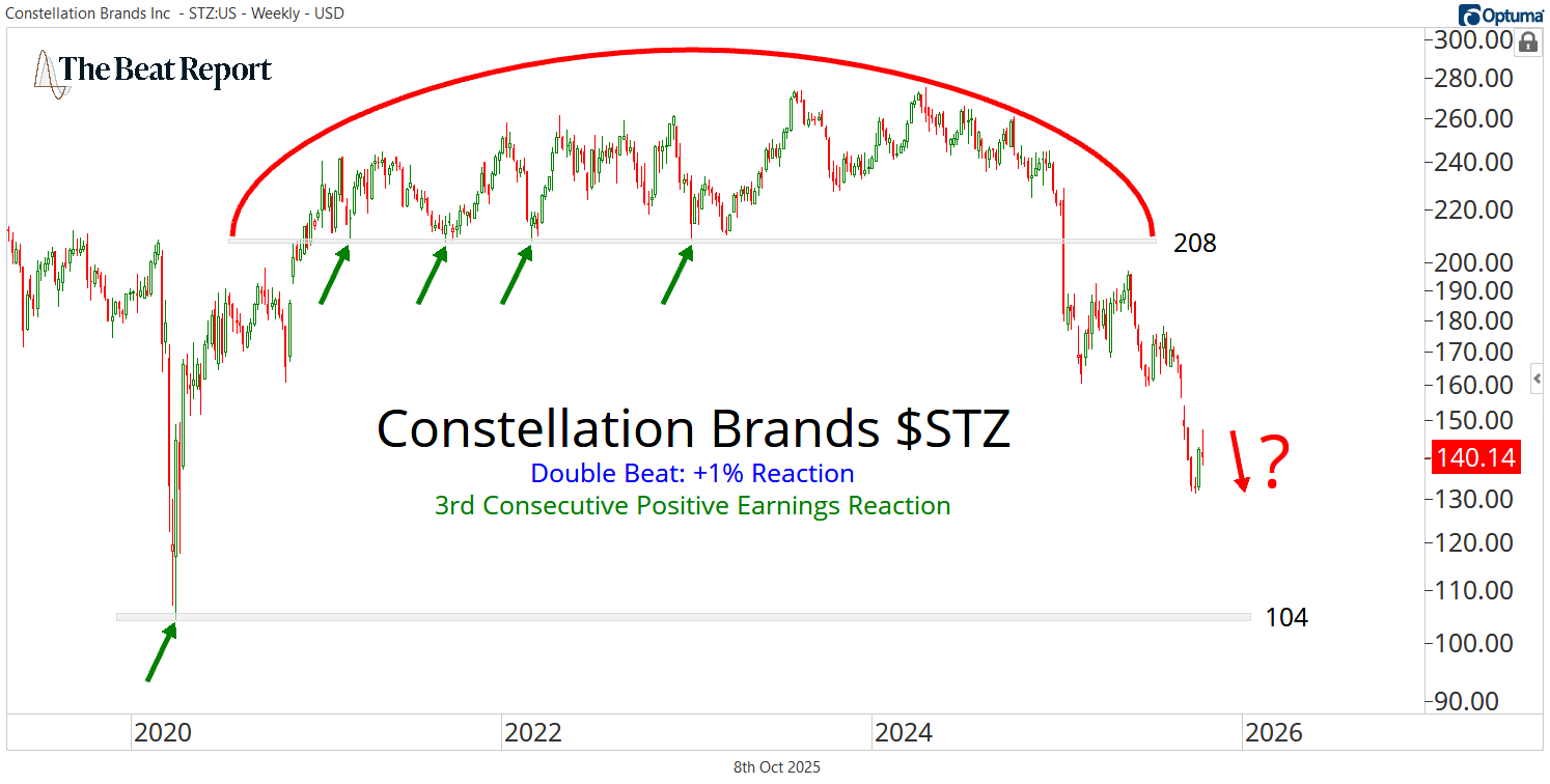 Constellation Brands had a +1% post-earnings reaction, and here's what happened: