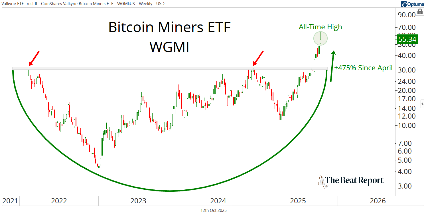 The Valkyrie Bitcoin Miners ETF $WGMI has exploded +475% since April, closing last week at fresh all-time highs.