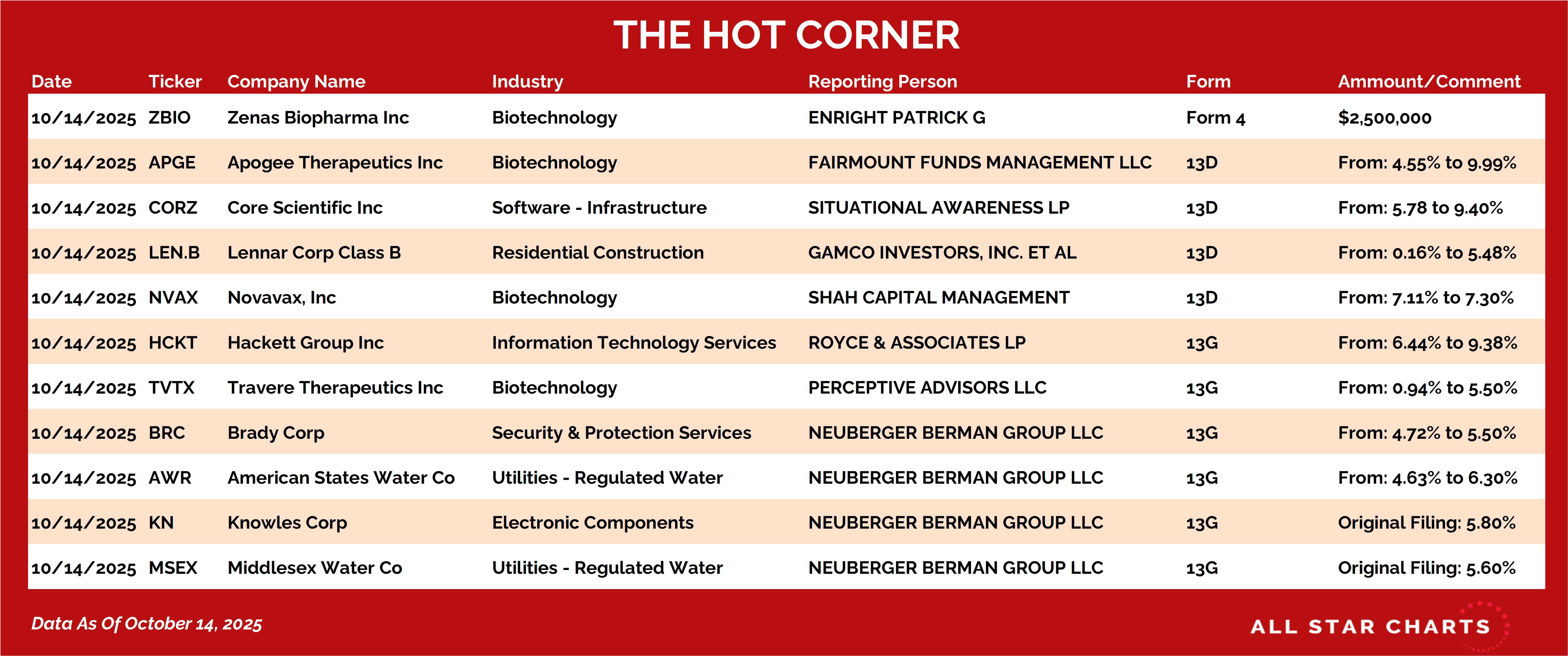 The recording and the chartbook for the October 13 Weekly Strategy Session are now available for Hot Corner Insiders.
