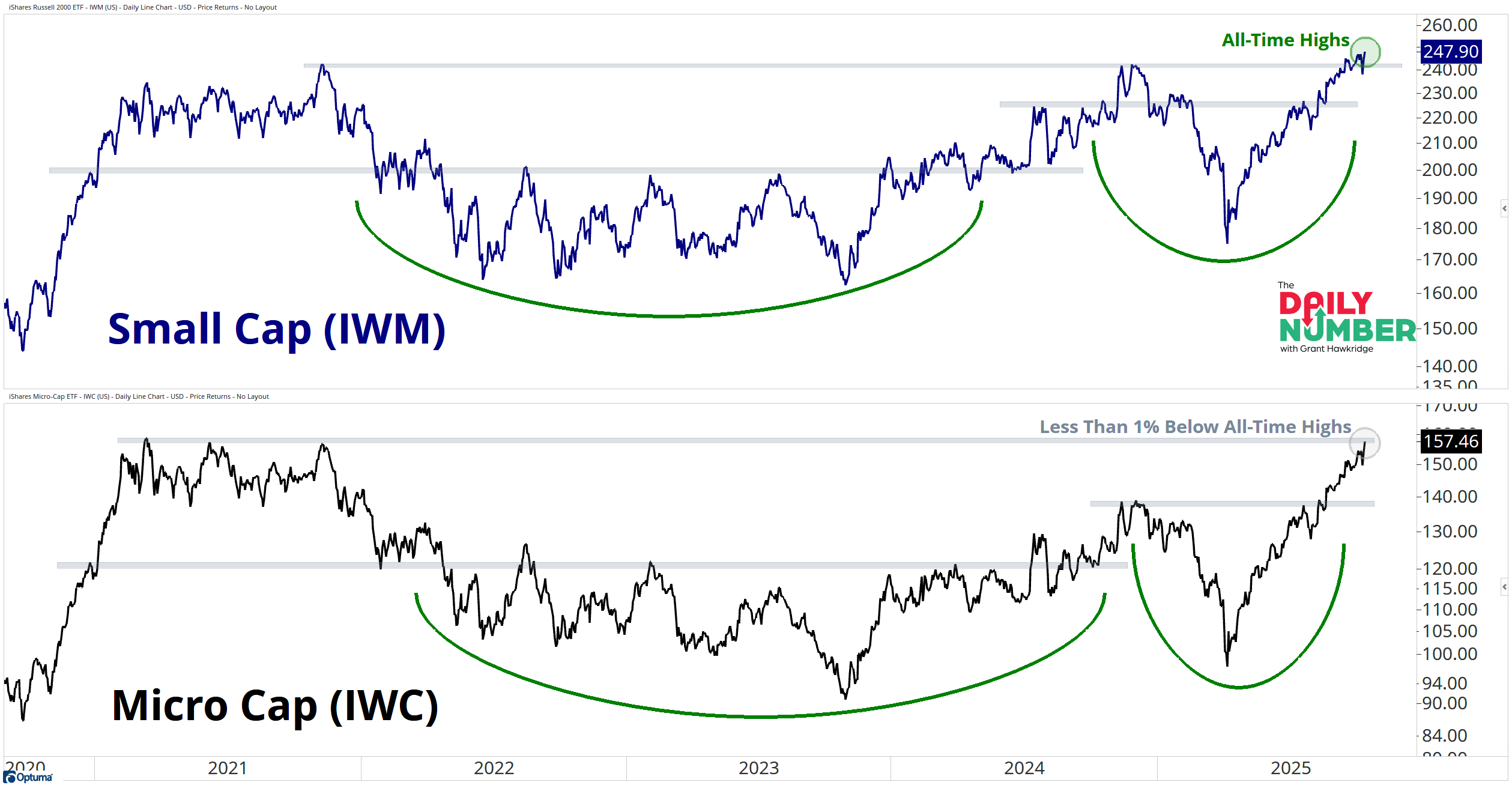 Despite a spike in volatility, two key corners of the equity market are moving together in strength. Small Caps are hitting fresh all-time highs, and Micro Caps are close behind.