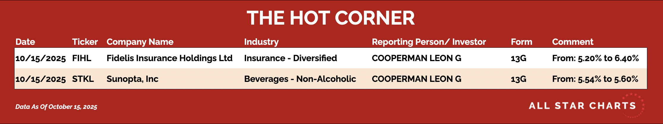 The recording and the chartbook for the October 13 Weekly Strategy Session are now available for Hot Corner Insiders.
