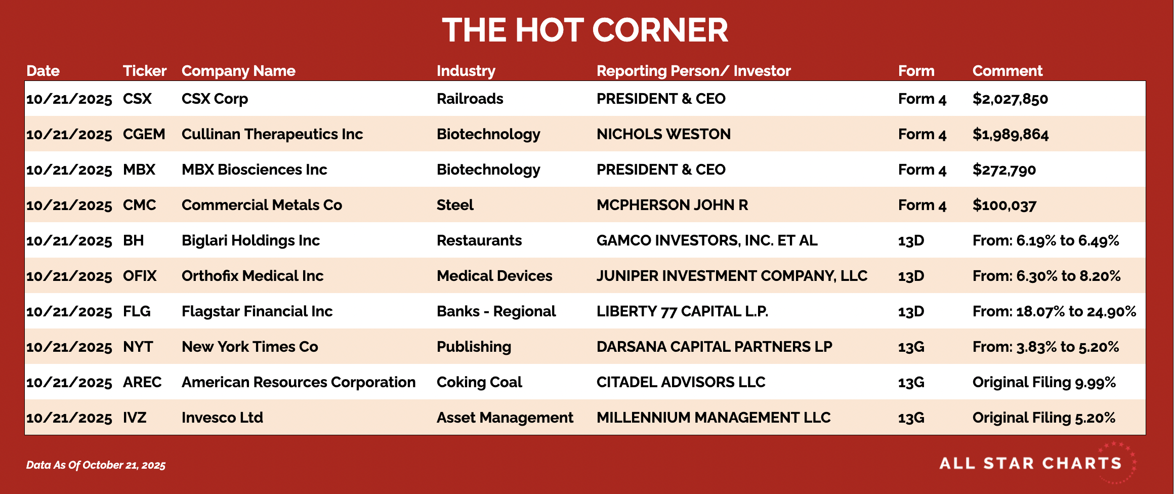The Hot Corner tracks where corporate insiders are buying โ revealing which companies top executives are betting on before the crowd.