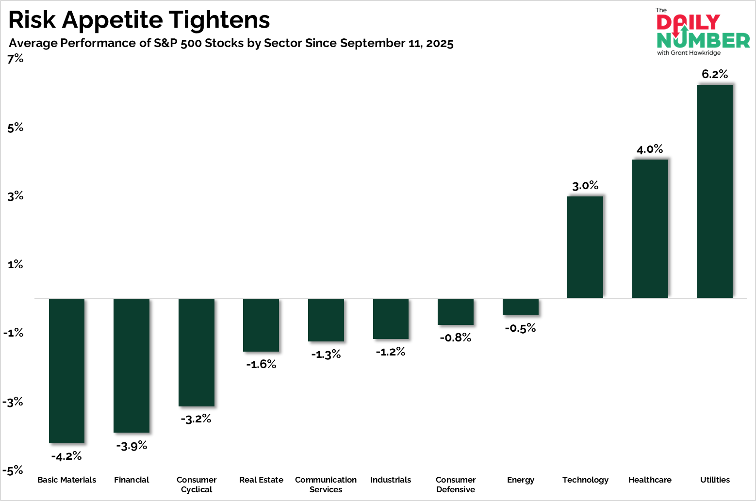 That’s the average stock gain for Utilities since the NYSE new highs list peaked on September 11, 2025.