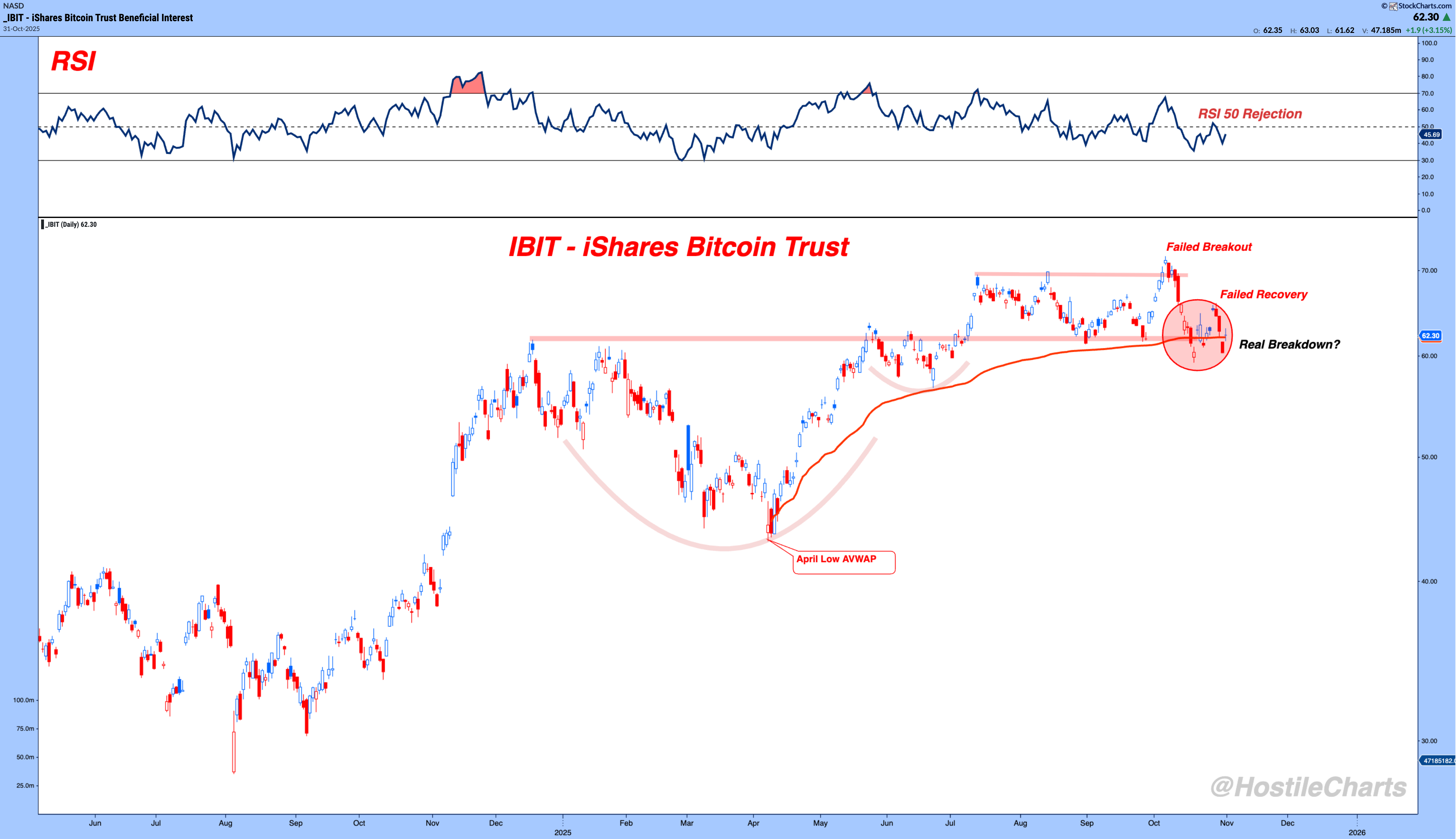 Bitcoin’s ETF chart (IBIT) is giving off some spooky vibes.