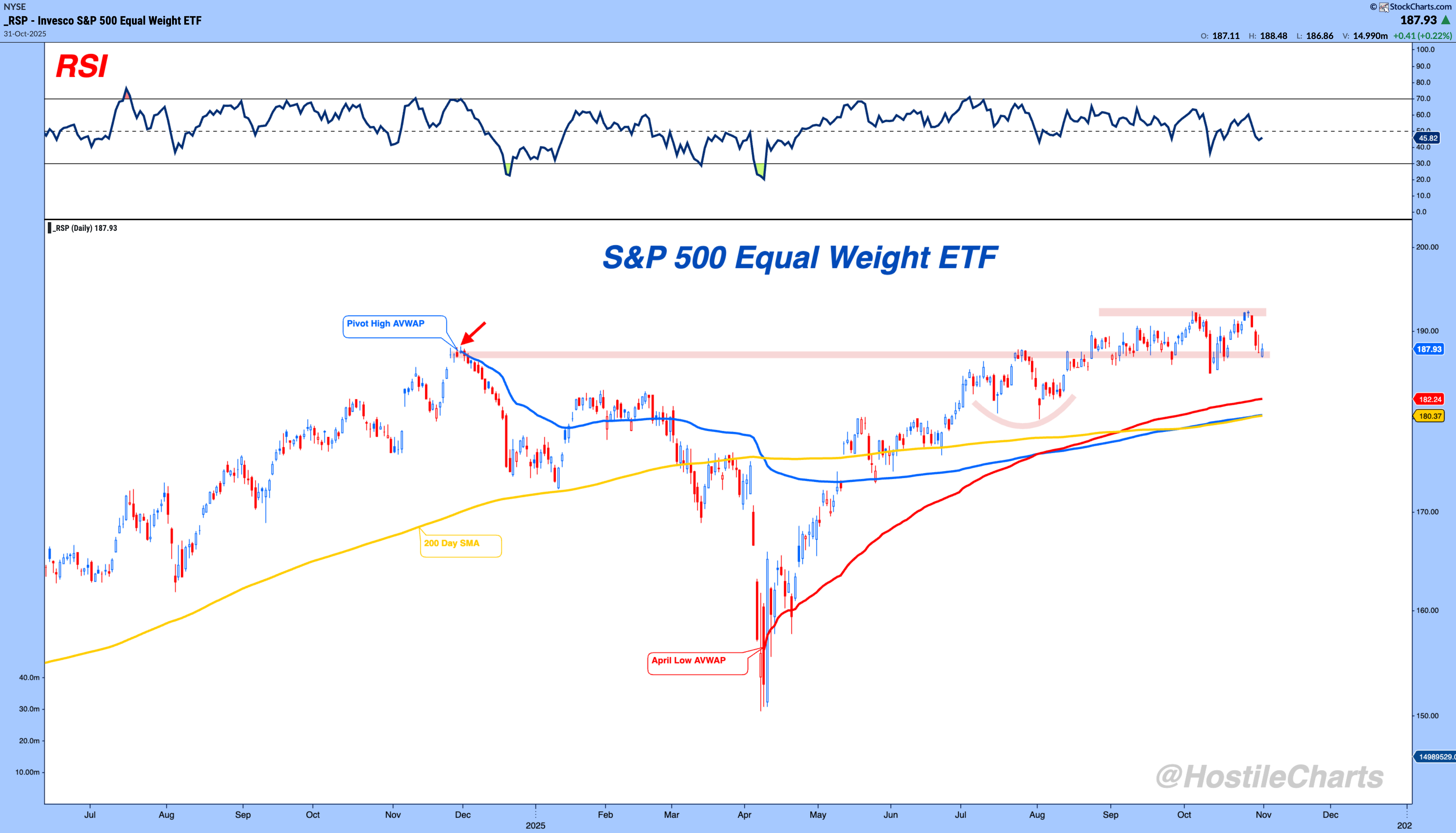 The Equal Weight S&P is testing key support near $187–188, right where the summer consolidation began.