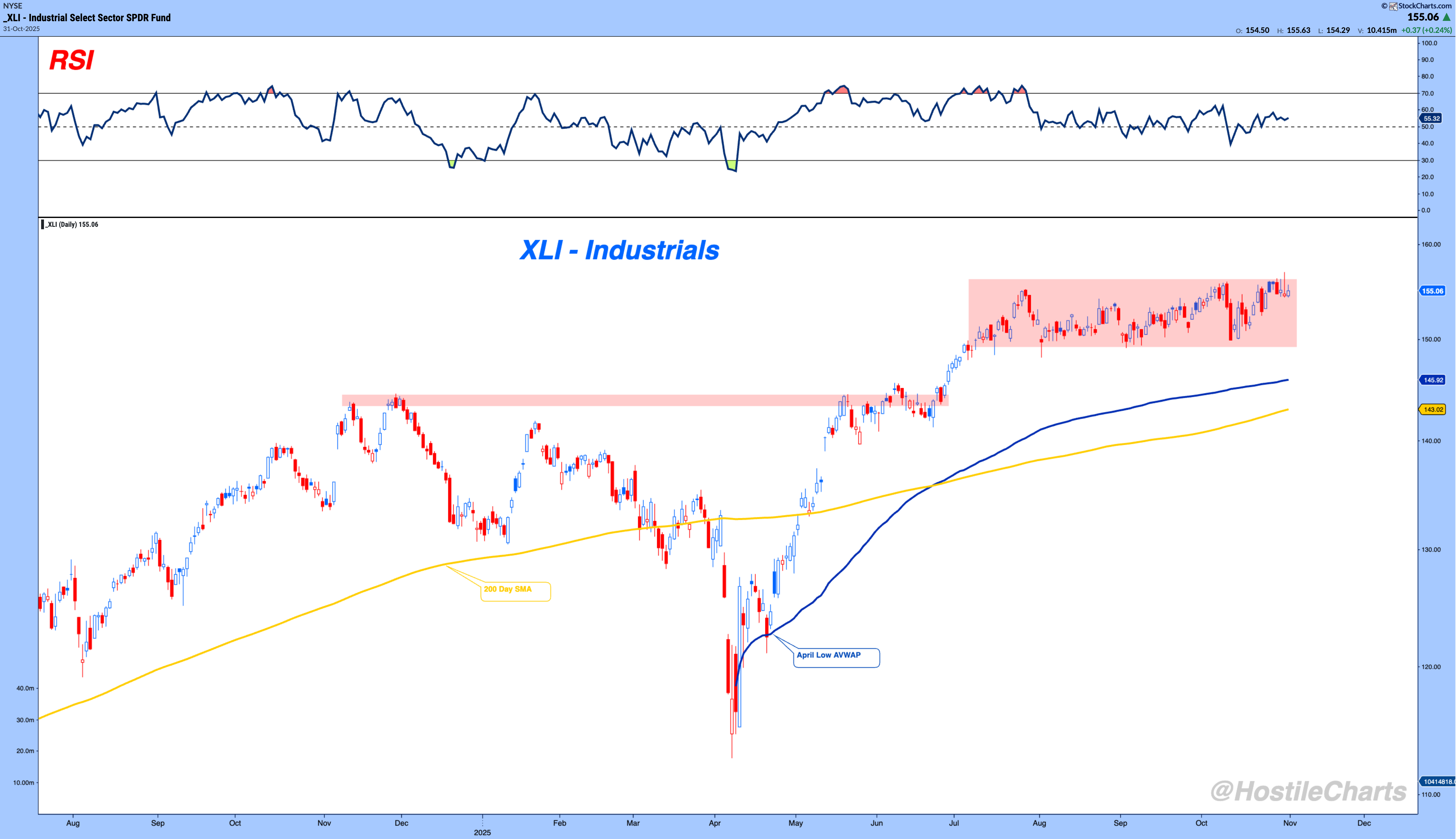 Industrials are stuck inside a massive consolidation that looks like a bull flag  but they’ve been chopping sideways for months.