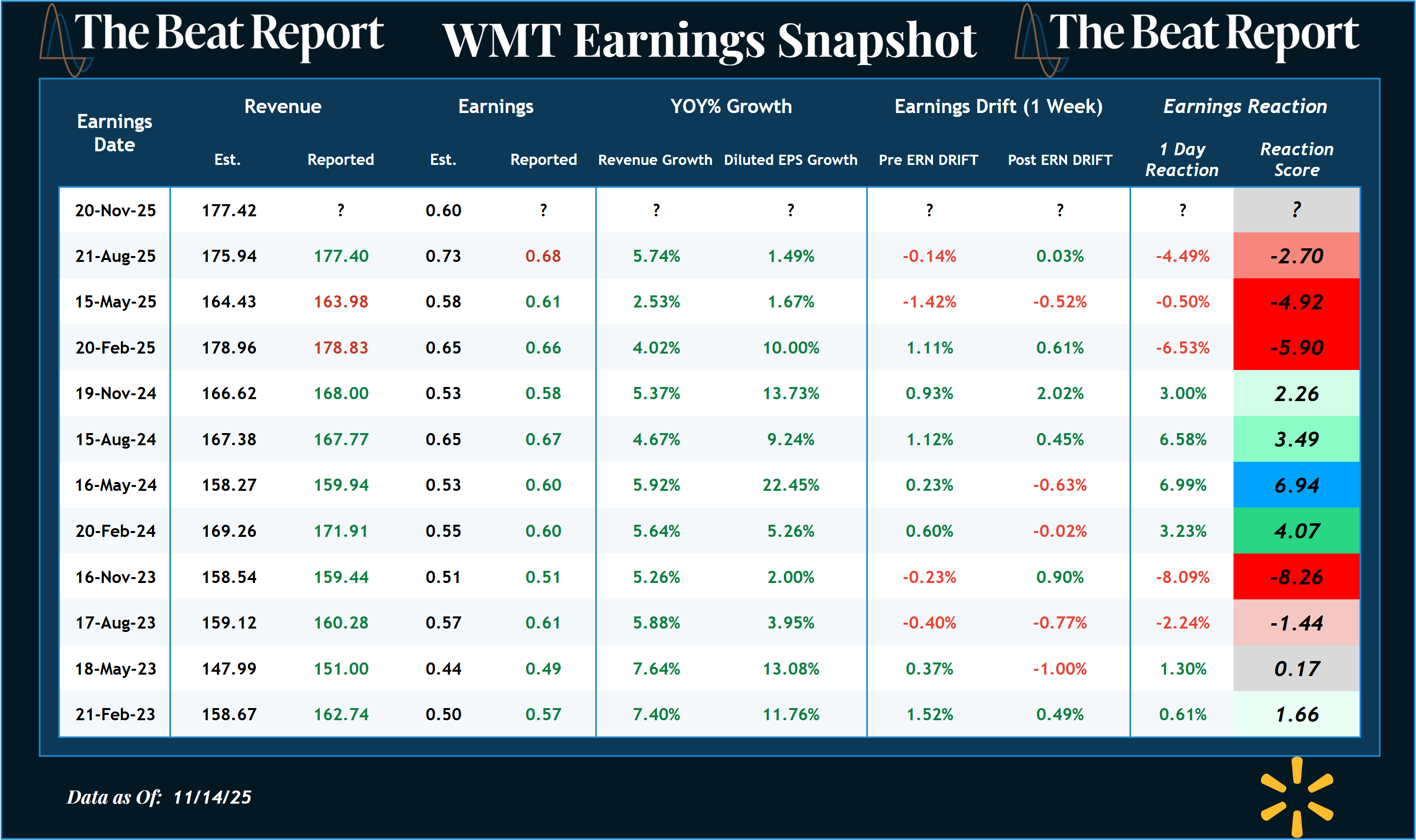 Here are the past three years of earnings results & reactions for WMT ๐Ÿ‘‡