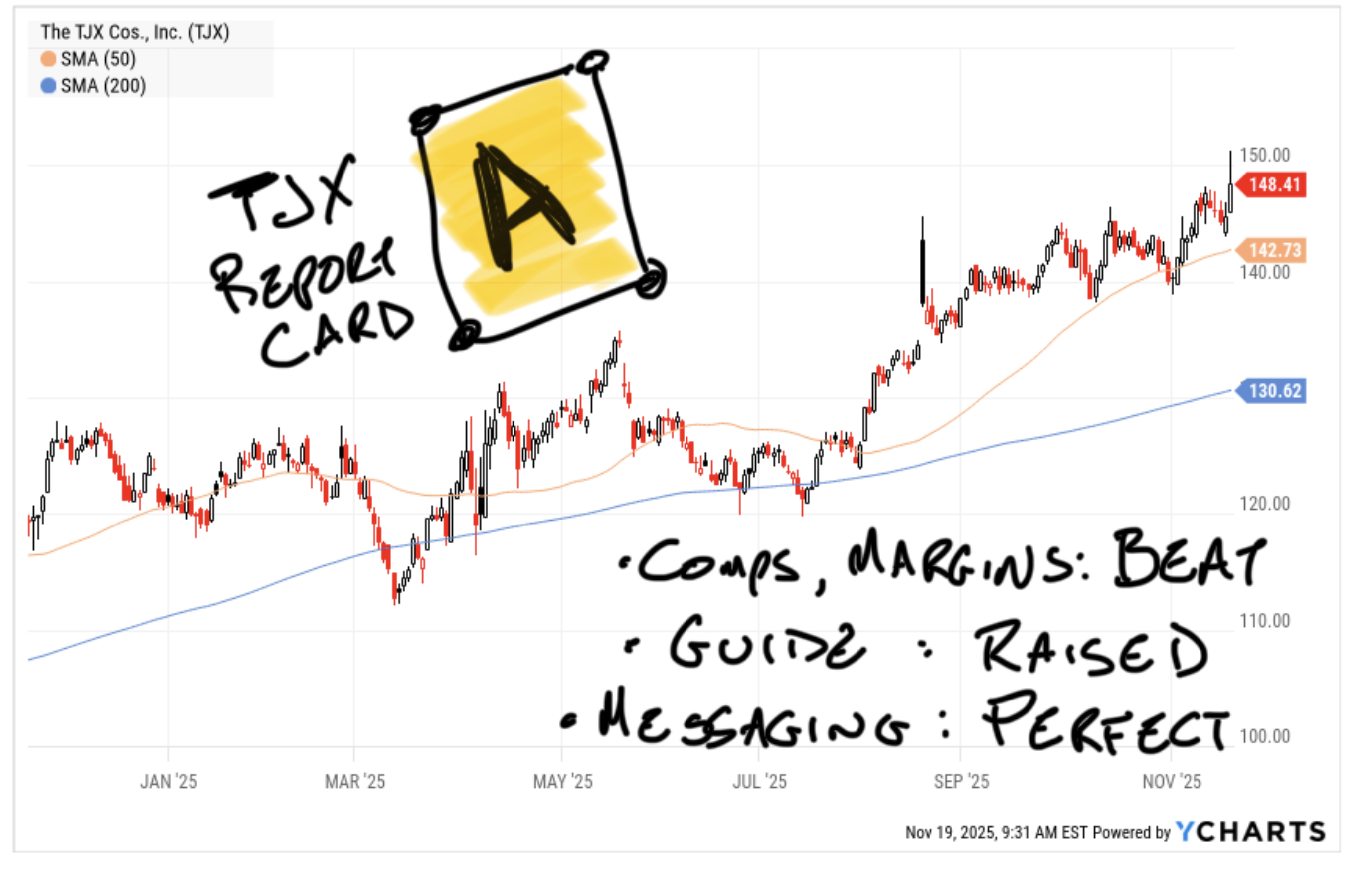 TJX beat on comps, raised guidance, and continues to have the clearest messaging in the industry. Let’s just let the CEO explain it: