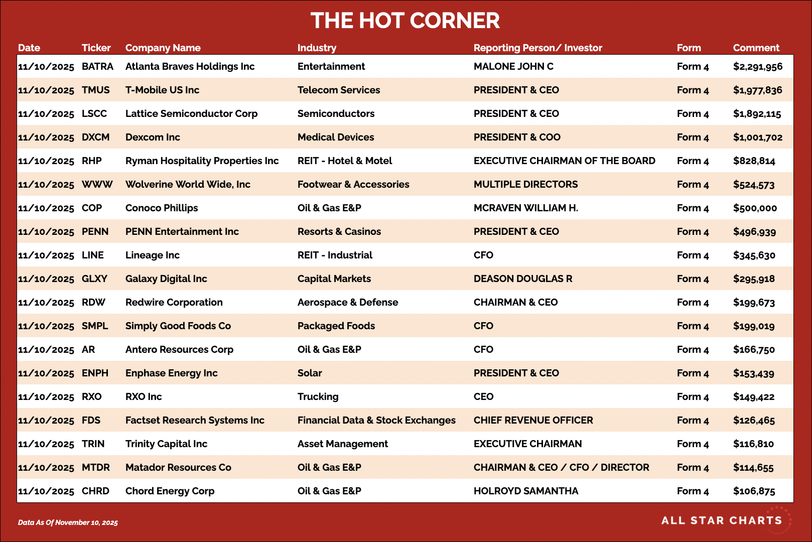 The Hot Corner tracks where corporate insiders are buying β revealing which companies top executives are betting on before the crowd.